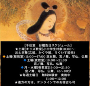 | 名前 | 千住堂 (巫女舞・宮ノ舞・仏舞教室) |